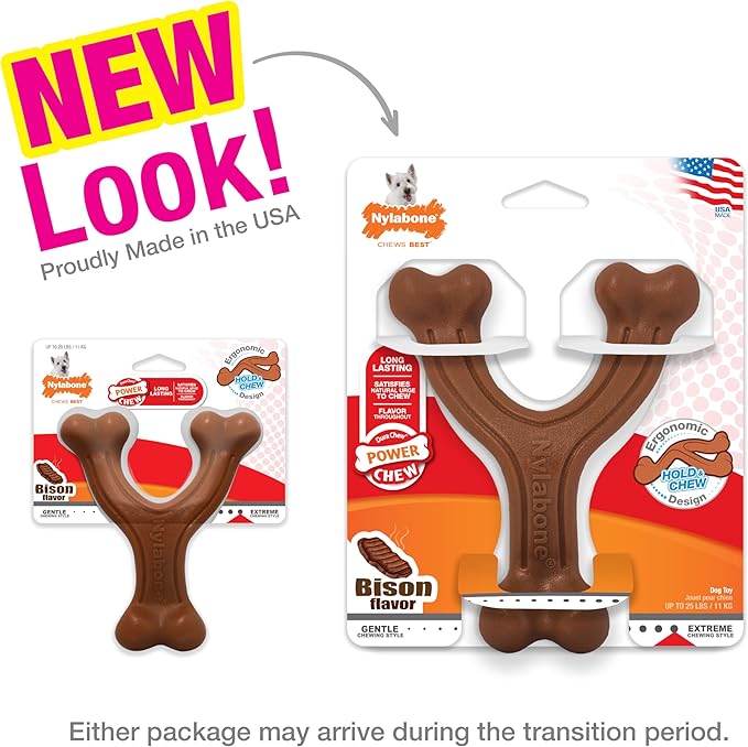 Nylabone Ergonomic Hold Wishbone Power Chew Toy for Dogs, Dog Toys for Aggressive Chewers, Bison Flavor, Small - Up to 25 Ibs, 1 Count