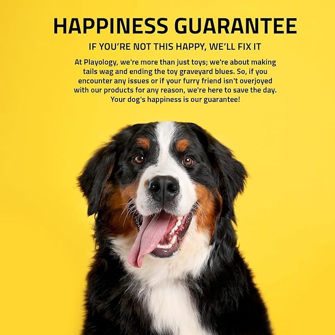 - Happiness Guaranteed: At Playology, we're more than just cool dog toys ; we're about making tails wag and ending the toy graveyard blues. So, if you encounter any issues or if your furry friend isn't overjoyed with our pet toys for any reason, let us know and we'll make it right. Your dog's happiness is our guarantee!