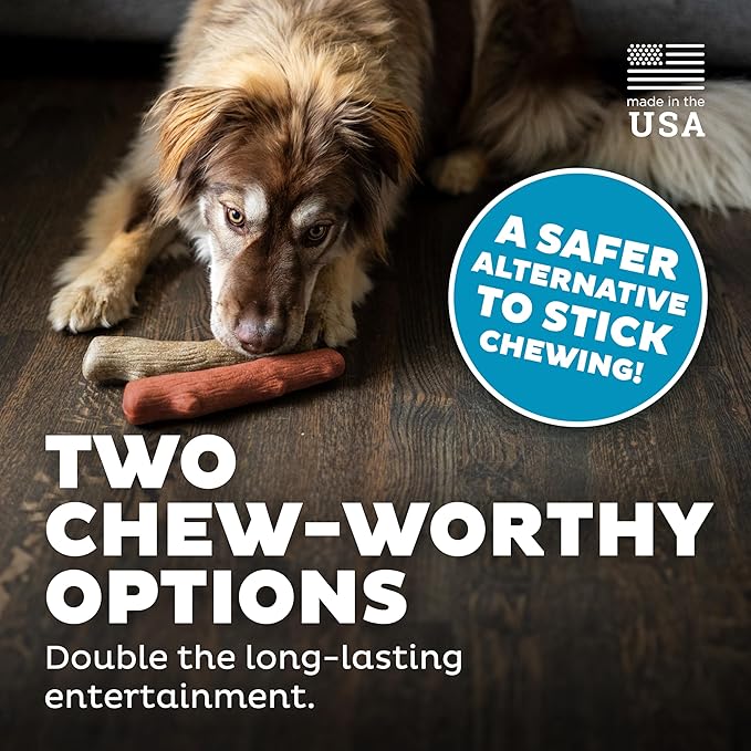 - Dog toys and puppy toys that are safer and less messy than real sticks, with a wood texture they love