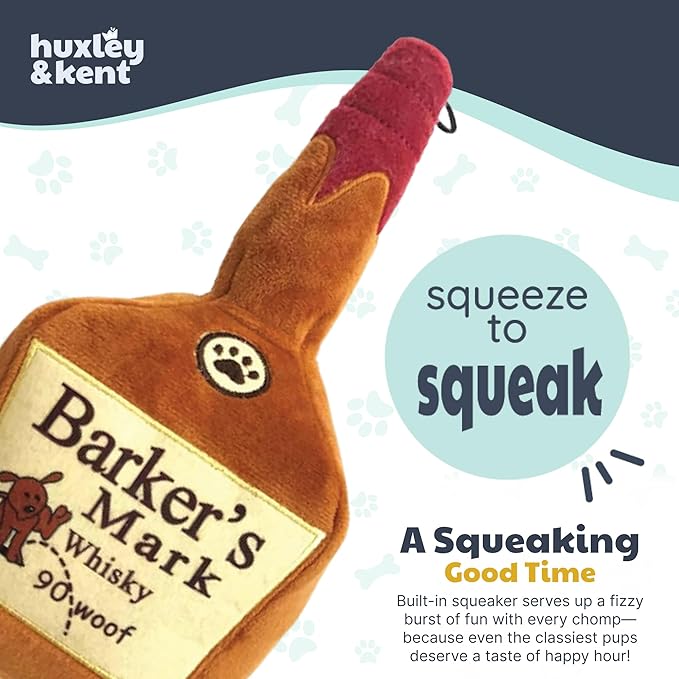 Huxley & Kent Funny Dog Toy w/Squeaker – Power Plush Squeaky Dog Toys for Small, Medium & Large Dogs – Soft Stuffed Animal for Indoor Play & Fetch - Barker's Mark, Small