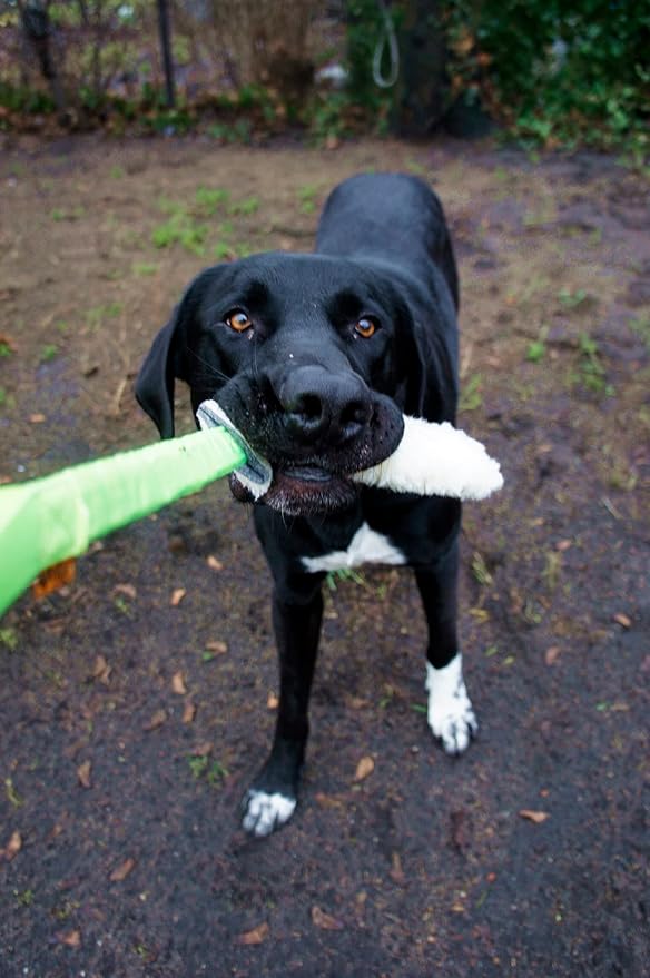 - HANDMADE PRODUCT – Colorful handle made of polypropylene webbing, allow for quick identification of the toy's position. It designed to make the toy safer for both dogs and humans. Thanks to the shock absorber the bungee handle helps to absorb strong pulls and nullify strong jerks from your dog during playtime. The stretchy bungee-like handle serves to help make the tugging more comfortable and provide enough space between the dog mouth and your hand