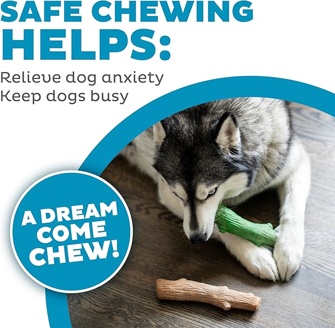 - Dog toys and puppy toys that are safer and less messy than real sticks, with a wood texture they love