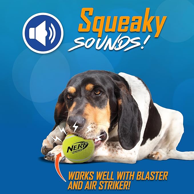 - Nerf Dog 16-Piece Dog Toy Gift Set includes the following: 16 2.5in Squeak Tennis Balls and a 10.25in Bucket