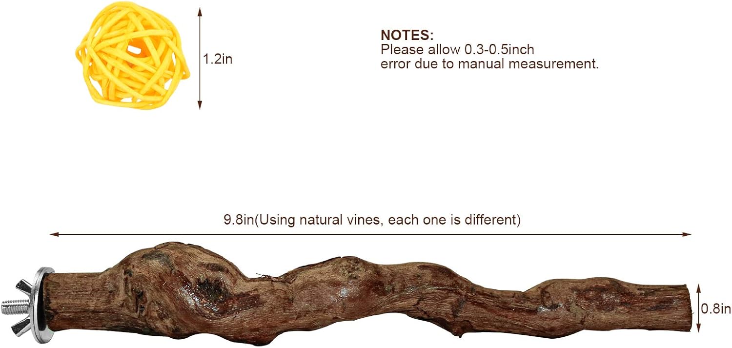 - ☃【Exercise & Entertains】The bark of the vine is uneven, so parrots could stand firmly on it without harming their claws and beaks. your parrots could stand on it to play and exercise.