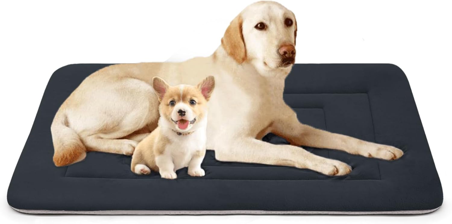 - Premium Material Large Dog Bed: Soft fleece and plush material surface makes it soft gentle feels and PP Fiber inner makes it durable for long time use. A good crate pad mat for small to large dogs