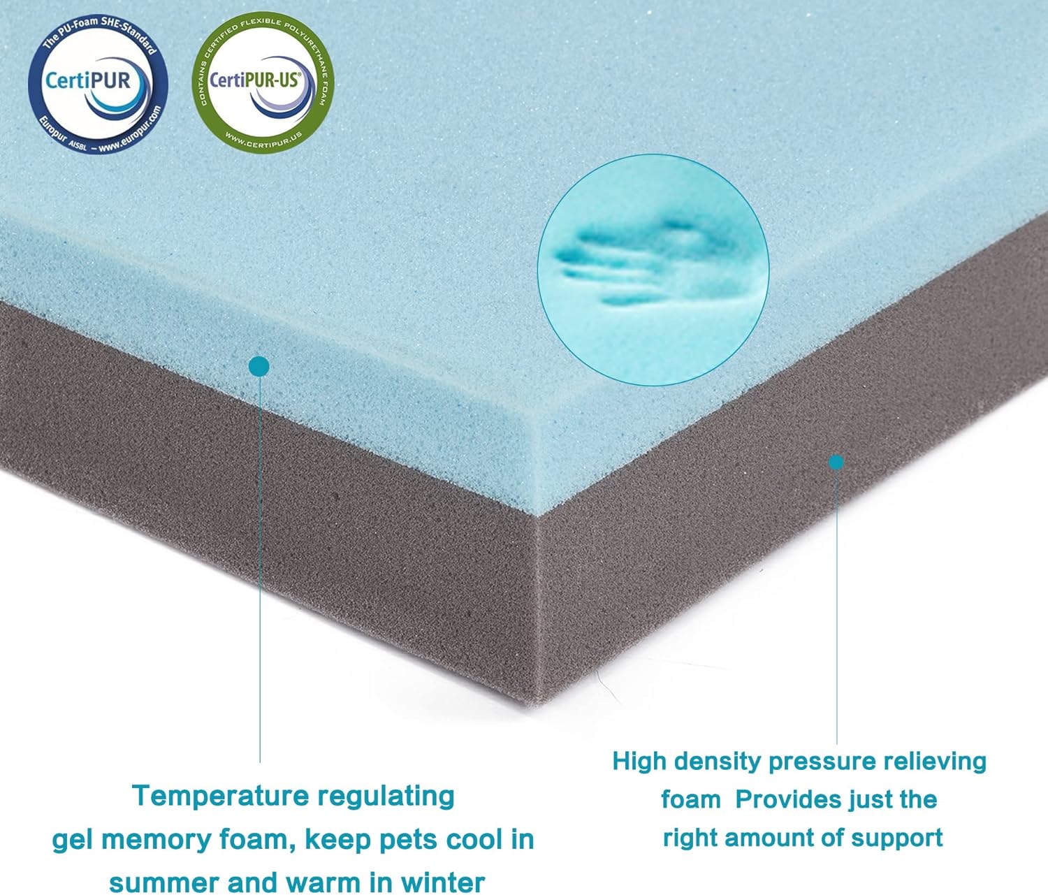 - COOLING GEL&DENISTY MEMORY FOAM:Cooling gel has a cooling effect and can keep your dog cool in the hot summer days. The high density memory foam supports the dog's body, reduces joint pressure.