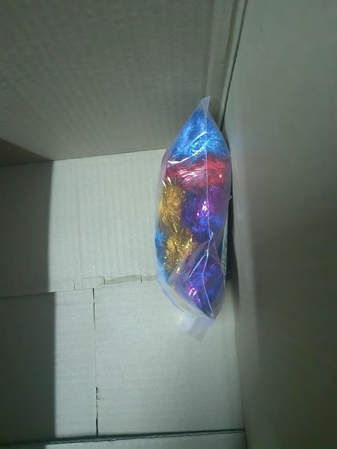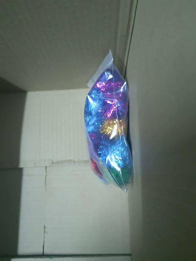 - 【20Pcs Sparkle Cat Toy Balls in Pack】You will receive 20pcs Multi-color fluffy cat balls toys for indoor cats. Material in polypropylene fiber, non-toxic, durable. Size: about 2 inches/5 cm with shiny metal wire; about 1.5 inches/3.8cm without shiny metal wire. Each weighs 0.11oz. Colors come randomly (6-8 colors).