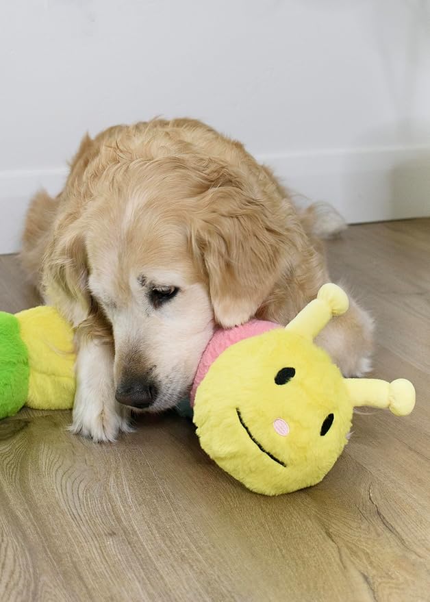 Flourish Pets 3 in 1 Multi-Layer Chew Toy for Active Dogs | Non-Toxic BPA Free Double Stitched Soft Fabric Exterior Dog Toys | Long-Lasting Dog Plush Toys - Small Catterpillar (20″)