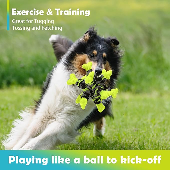 - Unique Design - Dog canvas chew toys are made of twelve soft salient stuffed bones which are flexible, This funny big dog toy is designed with jack shaped, easily thrown and kicked out like a soccer ball, bounces well, so it's fun for the dog to fetch