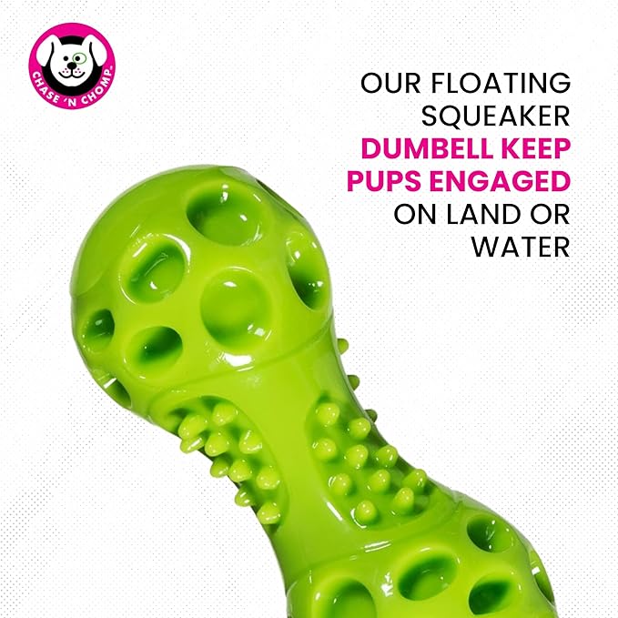 - FOR ALL DOGS: The squeaker dumbell is for dogs of all shapes and sizes, water-loving or land-loving! The squeak will keep your dog engaged and if you happen to have a water loving dog, the stick floats in the water -- giving your dog endless fun!