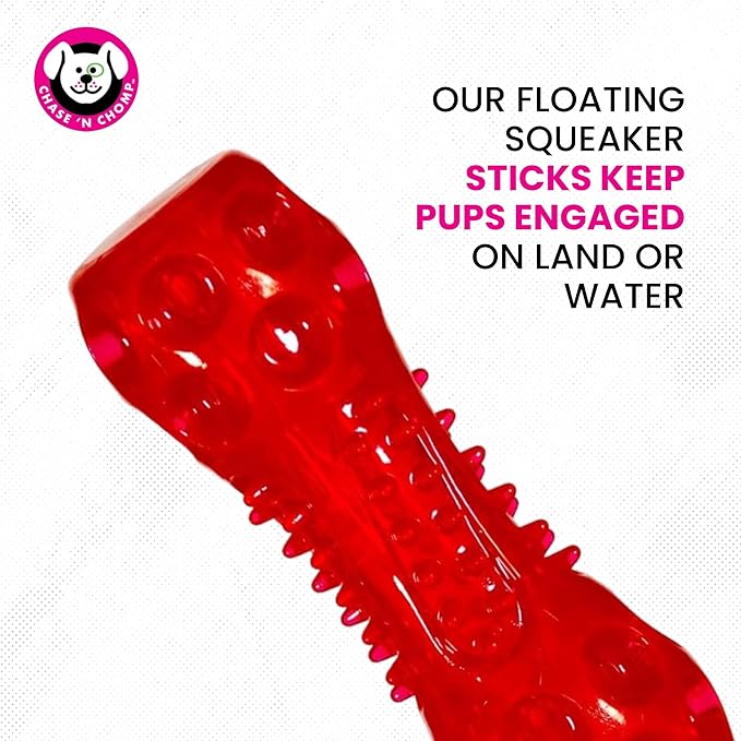 - FOR ALL DOGS: The squeaker stick is for dogs of all shapes and sizes, water-loving or land-loving! The squeak will keep your dog engaged and if you happen to have a water loving dog, the stick floats in the water -- giving your dog endless fun!