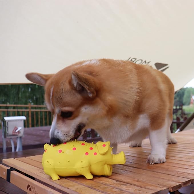 - ❤【Multiple Color-Combination Optional - Suit for All Breeds】There are 6 different color combinations of dog squeaky pig toys to choose. The latex grunting pig dog play toy is aimed to correct the aggressive chewers, suiting at home and outdoor for small medium and large dogs.(WARM TIPS: Proper supervision is advised when playing with the rubber pig squeaker. Do not recommend for most aggressive bite dogs.)