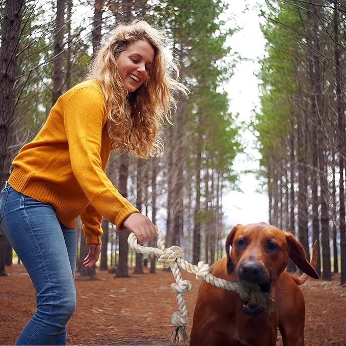 - 【DESIGNED FOR TUG OF WAR】 This dog rope for aggressive chewers features sturdy knots and a durable handle, making the tough dog toy perfect for tugging during interactive play, or as a dog chew toy for solo playtime. It is also a fun way to clean your dog's teeth and maintain your dog's oral health!