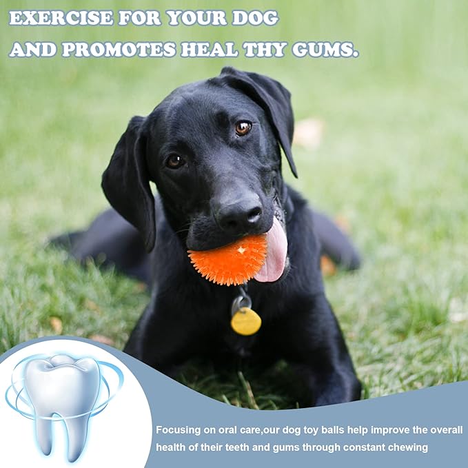 - 🐶12 Pack Squeaky Dog Toys: You will get 12 spiky dog balls in red, green, blue and orange colors, 4 of each color. Puppy ball toys 2.5 inches, designed for small and medium-sized breeds, with sufficient quantity and various colors to meet your pet's use needs.