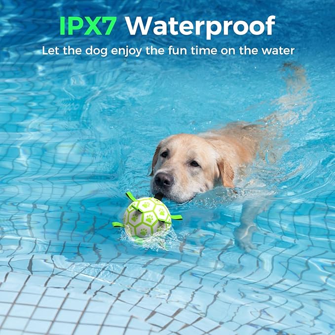 - [ Glow in the Dark Dog Toys] This distinctive dog soccer ball will glow with green neon light under continuous irradiation at night. The light up dog ball can attract a dog's attention and share its joy with you. Continuous lighting ensures that your dog can always find this pet toys and no longer have to worry about not finding the ball at night, it was puppy essentials about dog