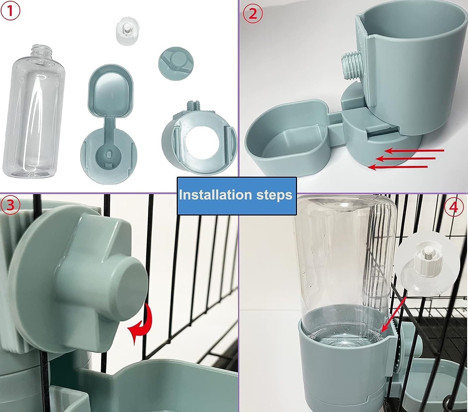 - [SAFETY MATERIAL] Our rabbit water bottle is made of high quality PP plastic, durable and has a capacity of 17 oz. This pet cage water feeder ensures your pet stays hydrated during your short absence of a few days. The small animal water bottle is also small in shape, making it easy to take outdoors. Drinking rabbit water bottles do not use boiling water to flush oh, so as not to affect the use of deformation