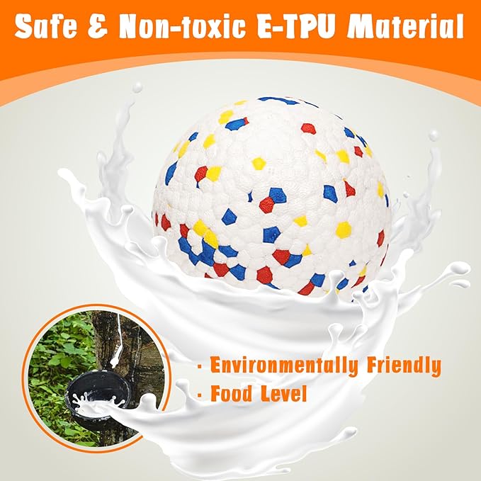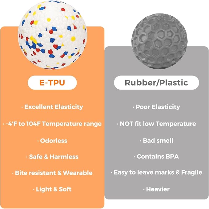 - Sturdy Materials - The dog chew toy is made of new E-TPU material rubber, it's a sturdy and light weight dog chew toy balls for aggressive chewers yet soft on dogs' mouth and safe on teeth.