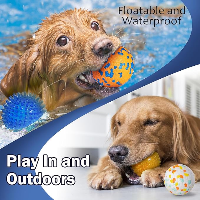 - 【BALL TOYS SET】This dog toy set consisting of two 2.5” durable tennis balls and two 2.56” squeaky spiky dogs toys balls. Two styles and different colors give dogs more options to play with. Suitable for small medium breed dogs and aggressive chewers. NOTE: Please pay attention to the size of these balls, mini dogs may not fit.