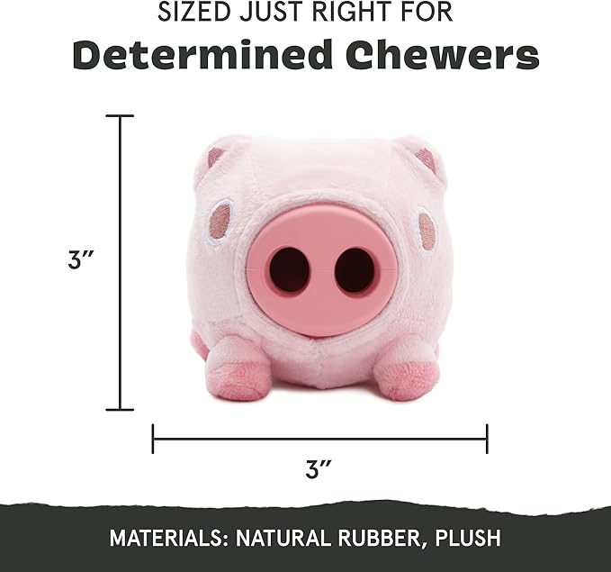 - Super Durable Toy: This durable pig dog toy is perfect for dogs who love a challenge. Underneath Hambone’s plush layer is an all-natural rubber core with a treat dispensing snout. It’s two layers of play that Super Chewers will go hog wild over!