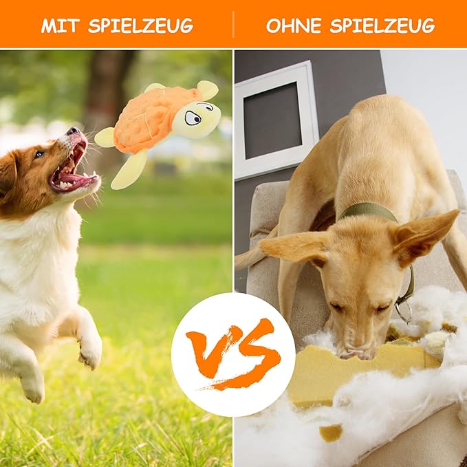 Squeaky Sea Turtle Plush Dog Toy - Durable, No Stuffing, Interactive Chew Toy for Small Dogs - Relieve Anxiety, Teething, and Keep Them Busy for Puppy(Orange)