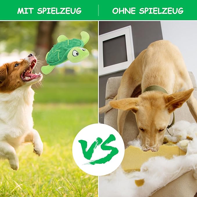 - No stuffing, no mess : This plush dog toy is designed without stuffing (Turtle head excepted), making it a great option for dogs who love to tear apart their toys but leaving no mess behind.