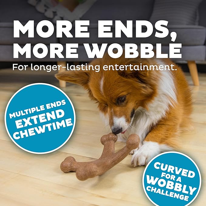 - Curved shape creates a wobbly challenge that extends chew time and makes for a more interactive dog toy