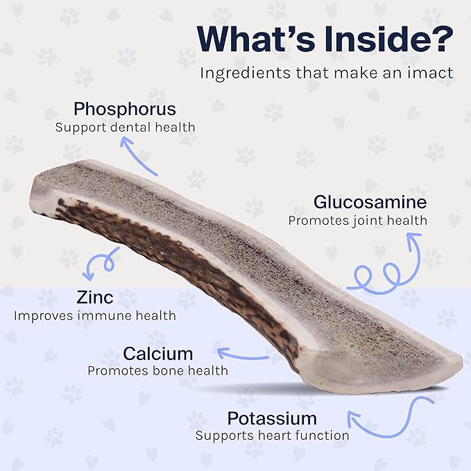 - Natural Stress and Anxiety Relief: Serve as an anxiety relief for dogs, satisfying their chewing impulse, which is a natural way for them to relieve stress; these elk antlers are a safe, cruelty-free, rawhide-free solution that reduces anxiety through productive activity, enhancing mental wellness.