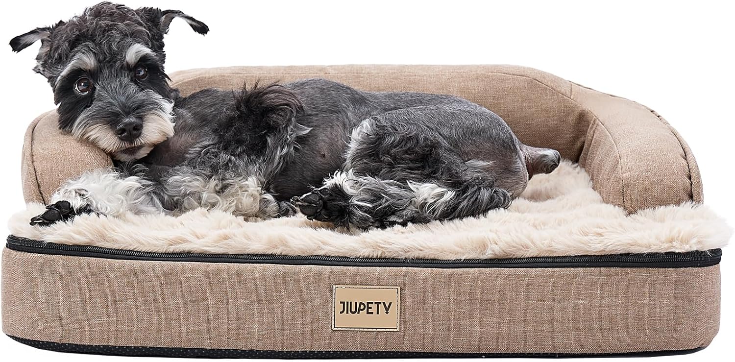 Jiupety Orthopedic Dog Bed for Medium Dogs, Egg-Crate Foam Pet Couch Bed, Washable Pet Sofa with Removable Cover, Waterproof Lining and Anti-Slip Bottom, Brown, 26"x20"x6.5"