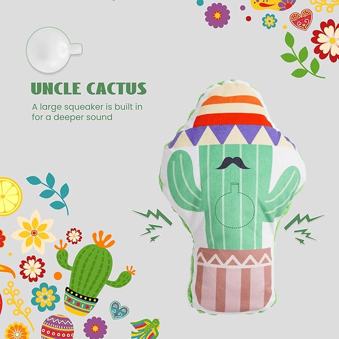 - Unique Mexican-Themed Toy Set – This dog toy bundle includes 8 adorable plush toys inspired by Mexican culture: a cute dog, cactus, taco, corn, orange slice, tequila, chili pepper, and maracas. Each piece celebrates the vibrant Mexican lifestyle