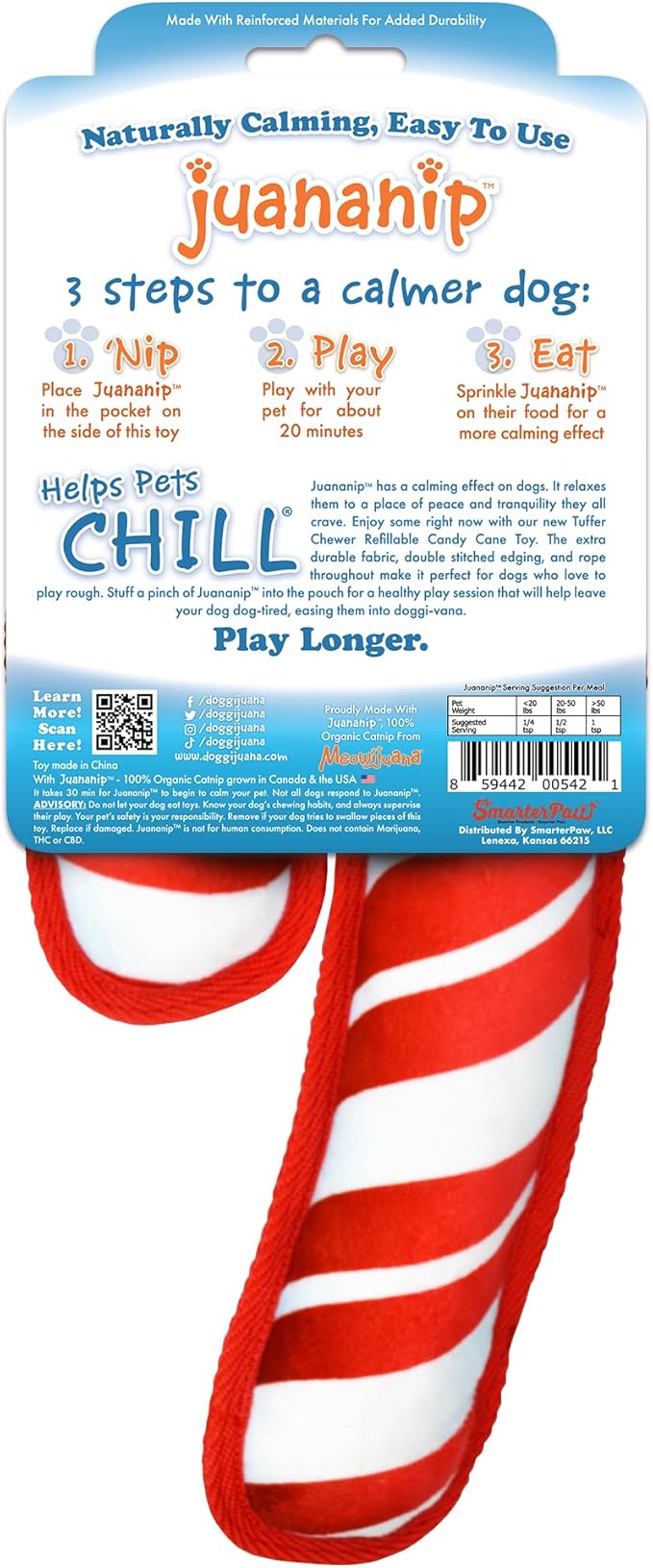 Doggijuana Tuffer Chewer Plush Dog Toy | Funny Dog Toy Plush with Juananip Catnip for Dogs | Calming Aid for Dogs | Interactive Squeaky Chew Toy for Play (Candy Cane)