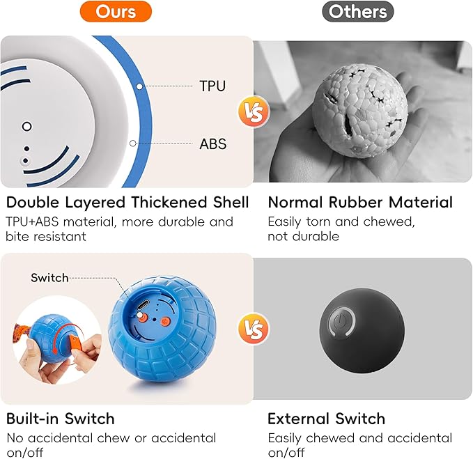 - USB Rechargeable and Durable Design – Built to withstand regular play, this rechargeable ball is designed for durability with TPU materials, making it safe for dogs that love to chew. The convenient USB Type-C charging ensures that this pet accessory is always ready for rolling and chasing, providing hours of electronic entertainment.