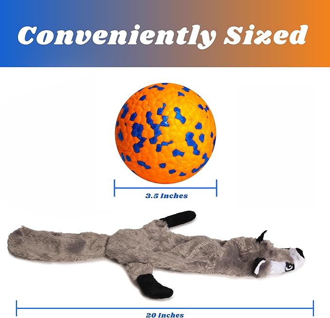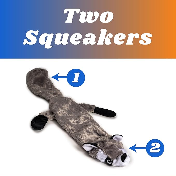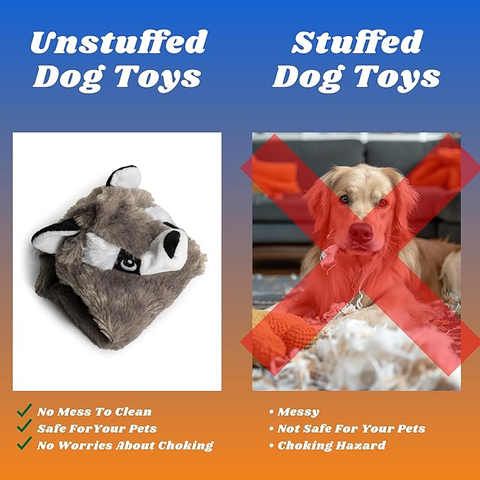 - Plush Dog Squeaky Toys: Includes a raccoon, tiger, and skunk, all 100% stuffing-free with no hidden dangerous materials, ensuring they’re completely safe for your furry friend. Enjoy playtime without worrying about choking or swallowing hazards, and say goodbye to scattered bits of fluff around your home.