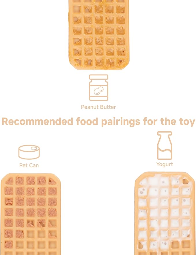 - Fun Waffle Design with Grooves: This toy’s unique waffle shape and textured grooves enhance grip and provide space for spreading peanut butter, yogurt, or other treats to make playtime more engaging.