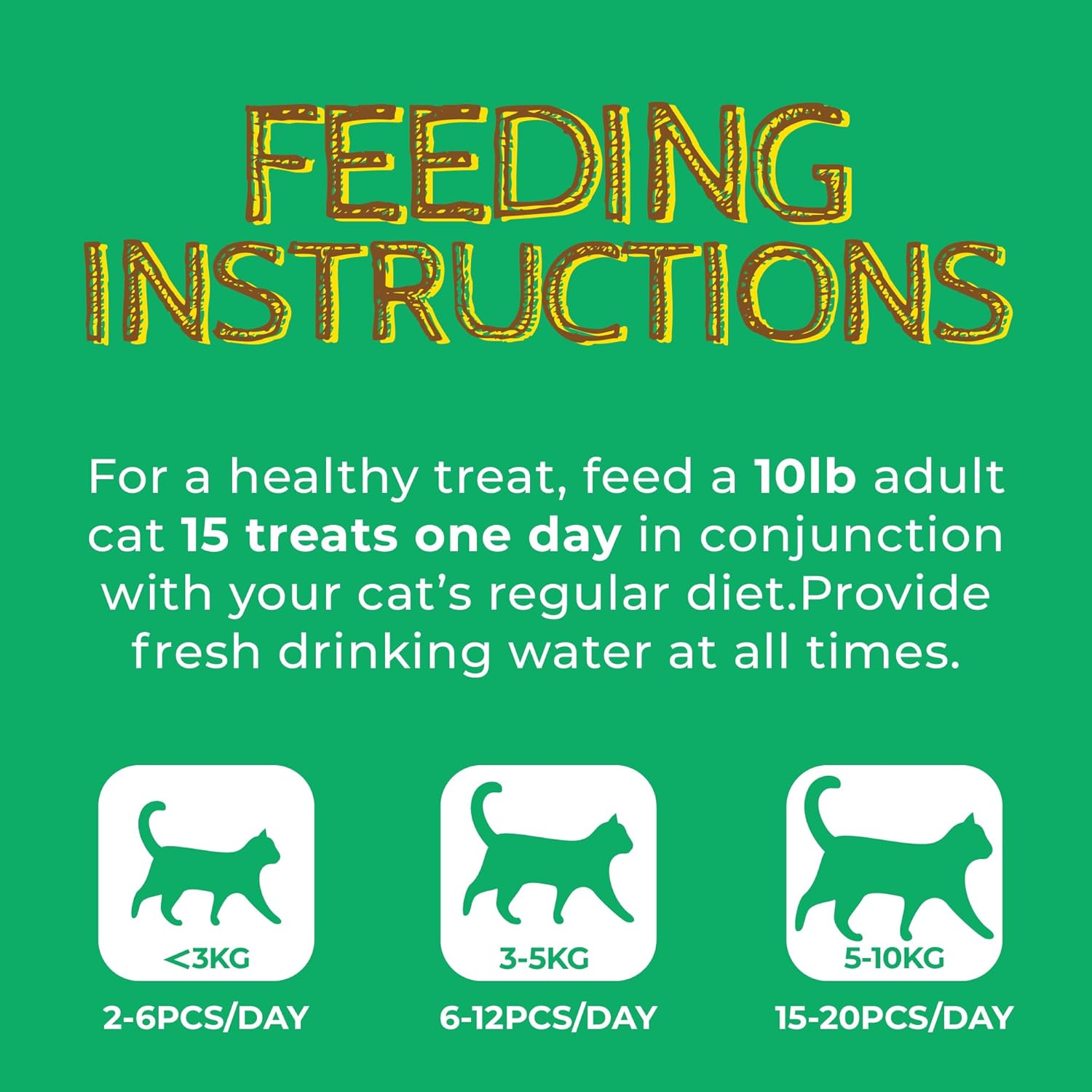 - Feeding tips: For cat dental care, feed a 10lb adult cat 15 treats/day in conjunction with your cat’s regular diet.