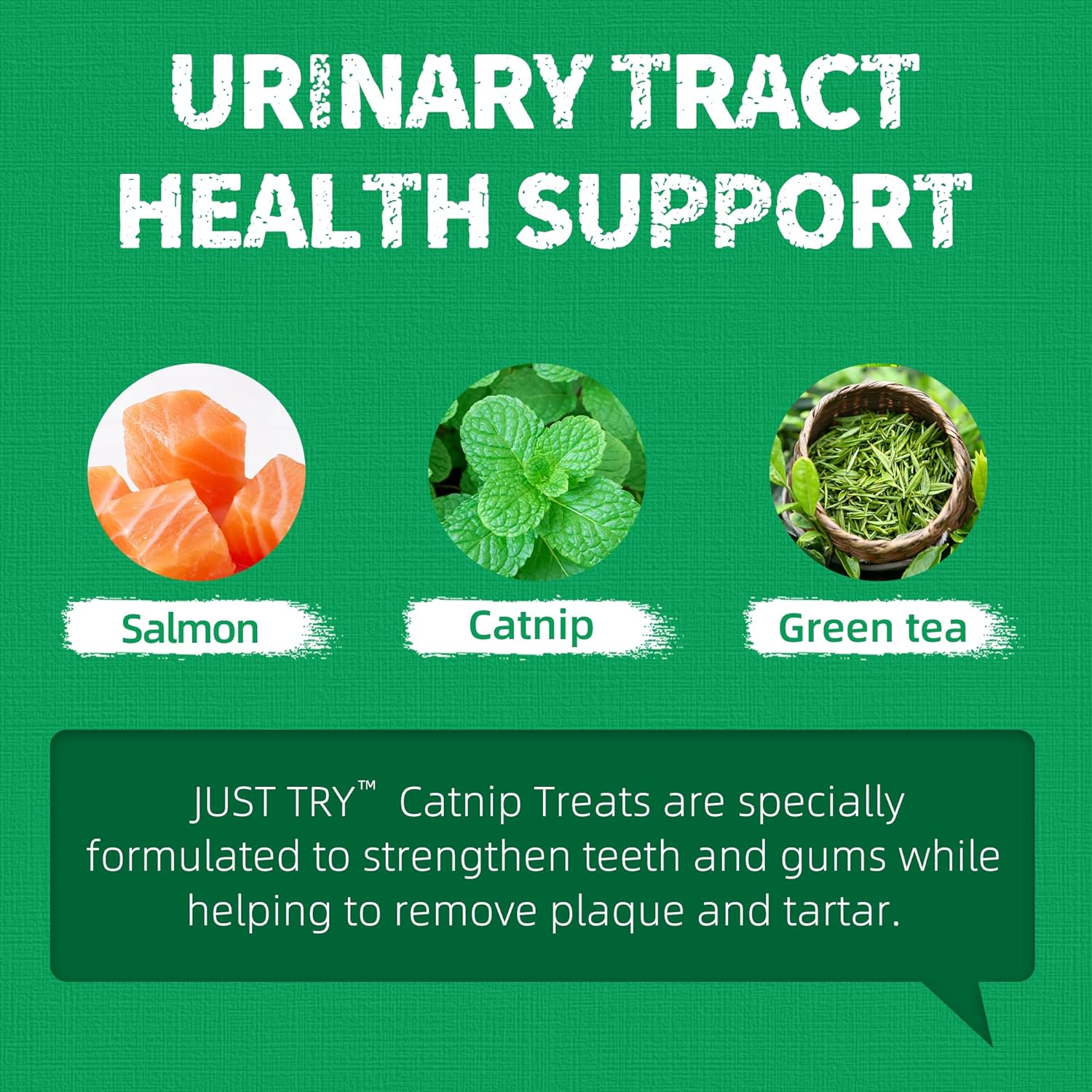 Just Try 13.4 OZ Crunchy Cat Treats Catnip Treats for Cats with Digestive Support, Natural Ingredients Kitten Treats with Real Salmon, Healthy Feline Snacks Training Biscuits Dental Care