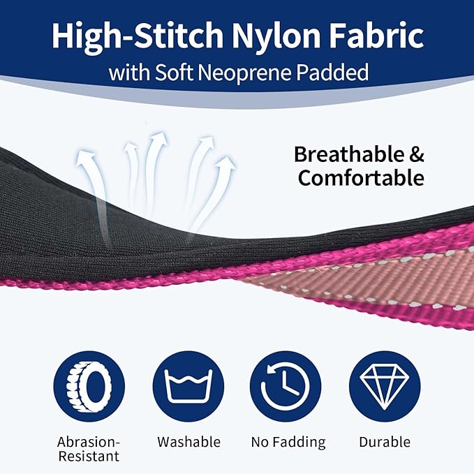 Reflective Dog Collar with Soft Padding Dog Collar for Medium & Small Dogs, No Pull, Heavy Duty, Adjustable Nylon Collar with Quick-Release Buckle, Walking Training Pink-XS
