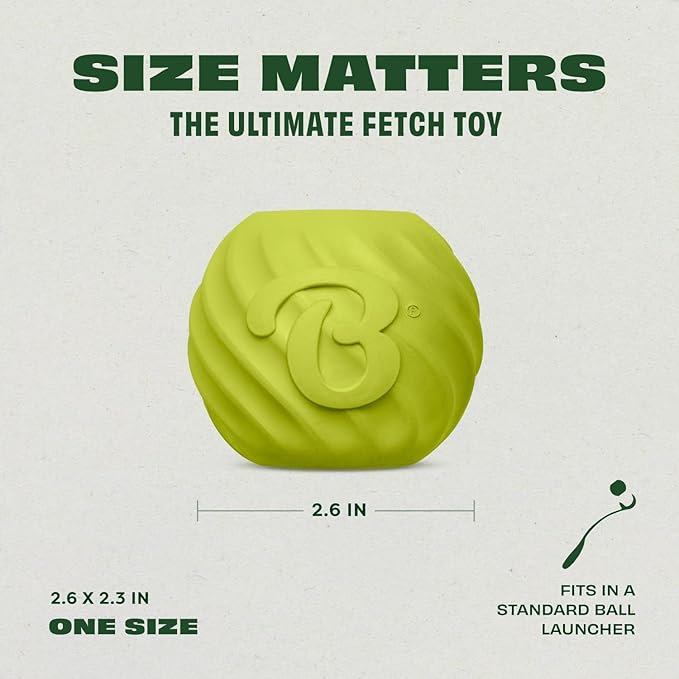 - PERFECT FOR FETCH: This ball has an unpredictable bounce and fits in a standard ball-launcher when it’s time to go long.