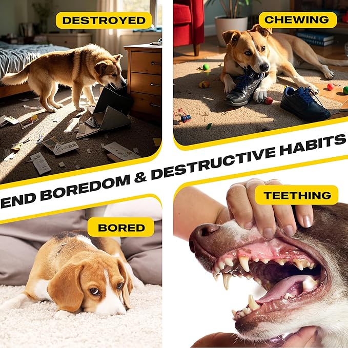 - 【REDUCE ANXIETY】 Dogs can chew for hours on these dog toys! With their attention and energy focused on trying to destroy a tough toy, there will be a decrease in anxiety! Dogs won’t chew your shoes when they have this toy value pack