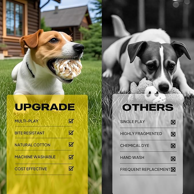 - 【SAFE & DURABLE】 Washable 100% natural cotton rope toys keep your dogs safe. Not your typical squeaky toys that will be destroyed in minutes – this strong dog toy bundle for small/medium dogs will last longer