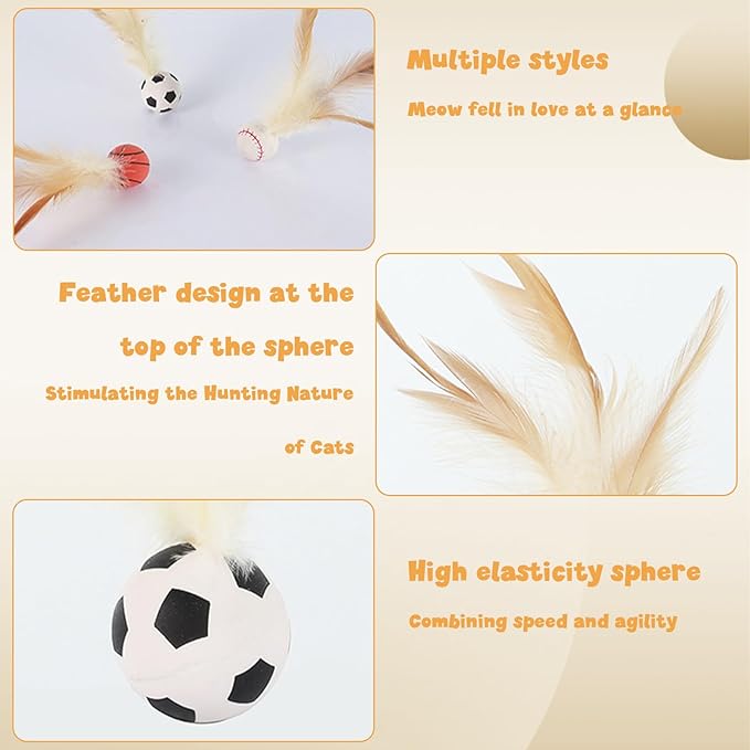 - Realistic feathers flutter from the top of each ball to mimic the movements of prey, stimulating your cat's natural hunting instincts and keeping their attention