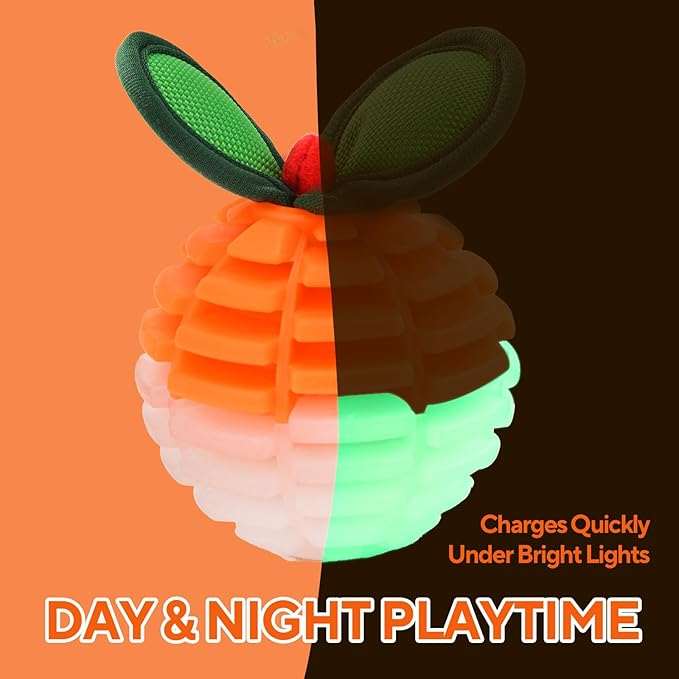 - 【Interactive Dog Chew Toys】: Both dog teething toys feature squeakers in their leaves, which stimulate your dog’s natural curiosity, while the chew ball's glow-in-the-dark function ensures visibility for nighttime play. These functions help change dental care into entertainment.