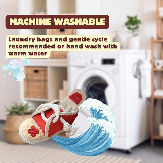 - 🛁 Easy to Clean & Pet-Safe – Our dog chew toy is machine washable, making it easy to keep fresh and clean after playtime. Like any plush dog toy, it is not indestructible, so we recommend supervised play for aggressive chewers.