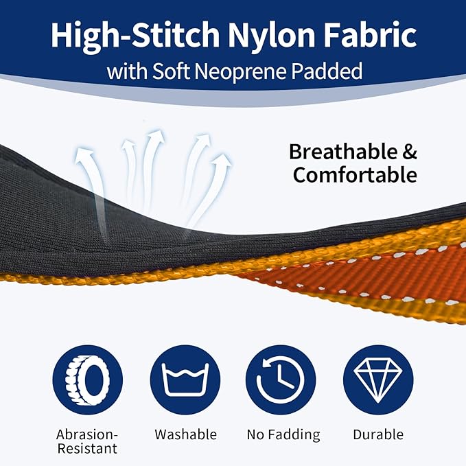 Reflective Dog Collar with Soft Padding Dog Collar for Medium & Large Dogs, No Pull, Heavy Duty, Adjustable Nylon Collar with Quick-Release Buckle, Walking Training-Orange-XL