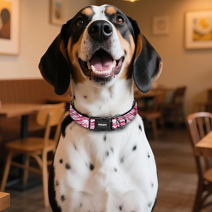 Reflective Dog Collar with Soft Padding Dog Collar for Medium & Small Dogs, No Pull, Heavy Duty, Adjustable Nylon Collar with Quick-Release Buckle, Walking Training-Pink camo-M