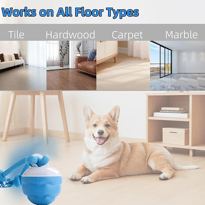 - 【Smart Activation】This interactive dog ball provides a captivating play experience. It rolls unpredictably with an attached rope, mimicking the movements of prey. Built-in sound features such as chirping birds or Bluetooth connectivity to play music and other sounds will keep your pet interested. Motion-activated sensors mean it comes to life with a touch or a pat, stimulating dogs natural hunting instincts.