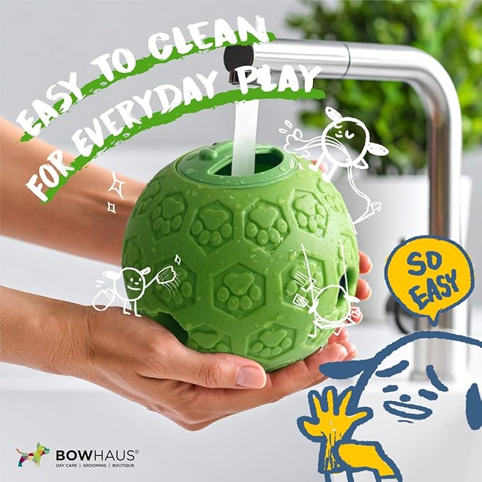- l Giggle Sound and Treat Dispenser: Built-in sound tubes create giggle sounds when rolled or shaken; treat dispenser rewards dogs during play; activates with every shake to keep dogs engaged; no batteries needed; encourages active play and feeding fun